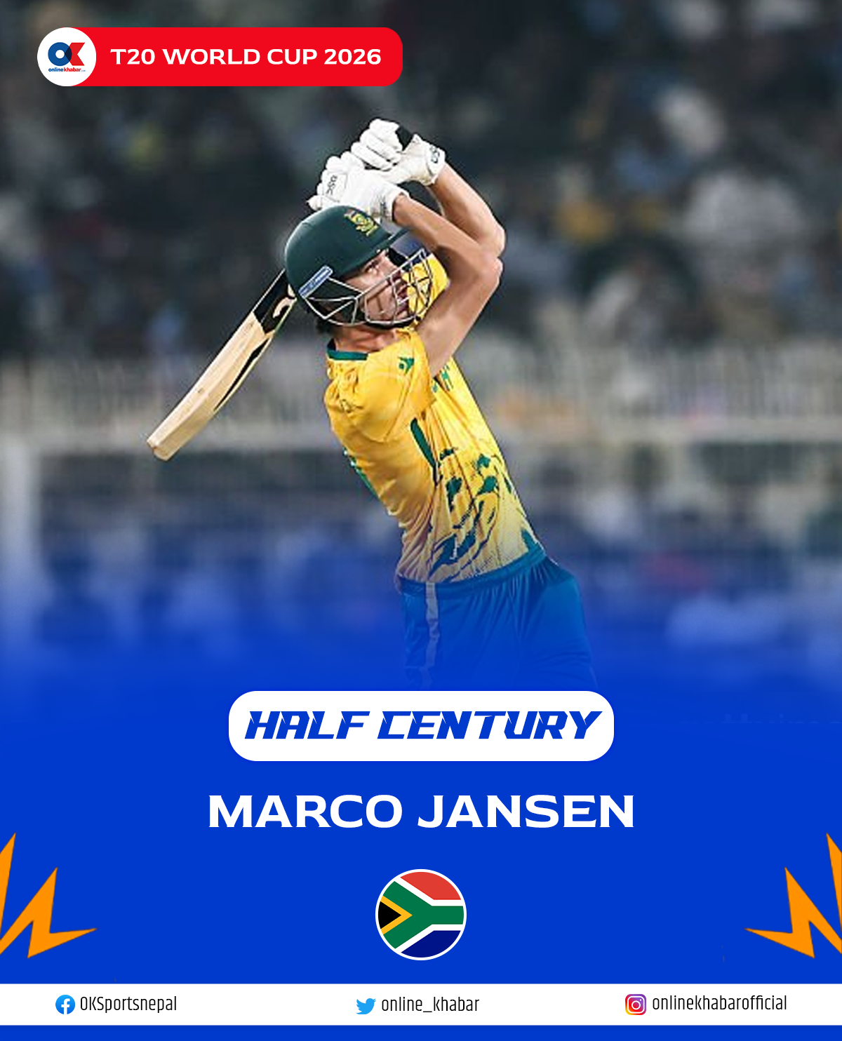 यो अर्को छक्काका साथ अर्धशतक पूरा गरेका छन् यानसेनले ।