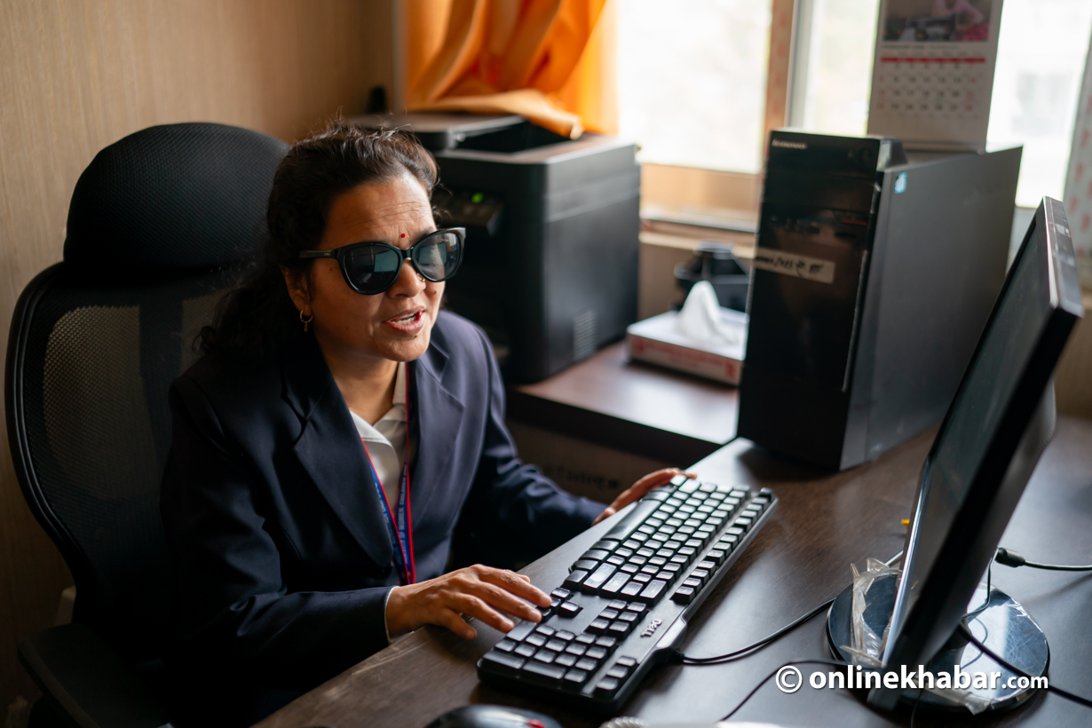 इमेल आयो भने अरु कैयौं सहकर्मीहरुले प्रिन्ट गरेर हेर्छन् र फेरि लेखेर जवाफ फर्काउँछन् । नीराले भने विशेष सफ्टवेयरको सहयोगमा सोझै इमेल पढ्छिन् र जवाफ दिन्छिन् ।