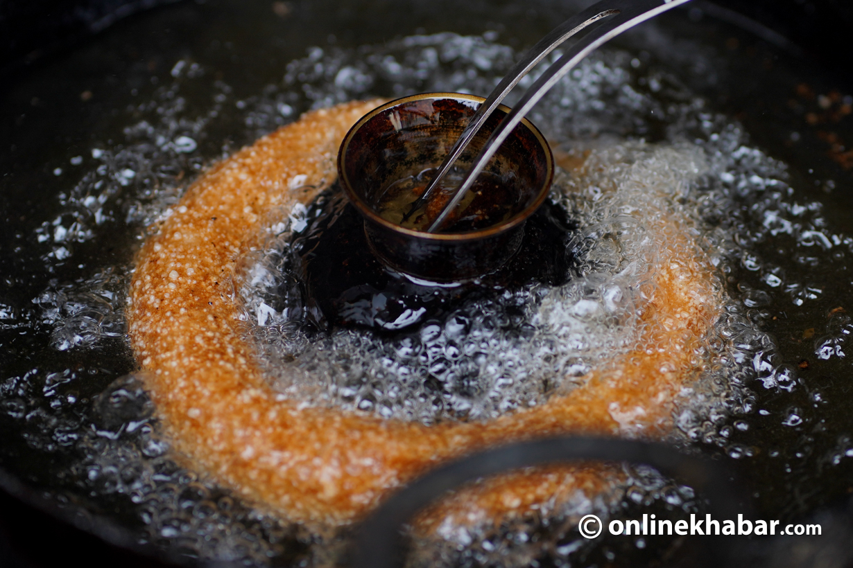 पहिला दिनको १०-१५ वटा बिक्ने रोटी, अहिले चाडपर्वमा त बनाएरै नसक्ने गरी अर्डर आउँछउनी गर्वका साथ भन्छिन्, ‘दशैं-तिहारमा त हामी बुढाबुढी र छोराछोरी मिलेर रातभरि रोटी पोल्छौं।’