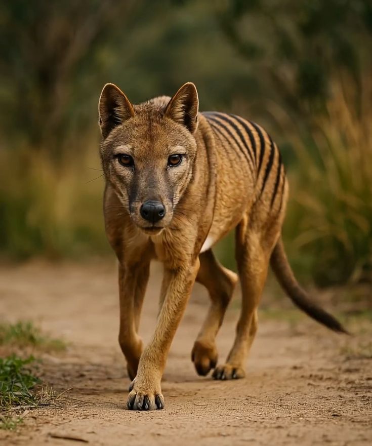 टास्मानियाको यो ब्यागल प्राणी १९३६ मा लोप भयो । शिकार र प्रतिस्पर्धाबाट विलुप्त, यसको पट्टीदार शरीरले चित्रकला र सिनेमामा जीवित राखेको छ।