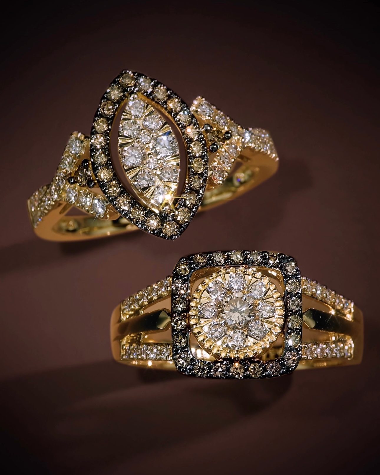 बजारमा डबल लेयर रिङ डिजाइनका धेरै प्रकार पाइन्छ । यसको पहिलो तहमा हीरा, दोस्रो तह फूल डिजाइन देख्न सकिन्छ । हीरा र चाँदीमा पनि यो डिजाइन बजारमा उपलब्ध छन् ।